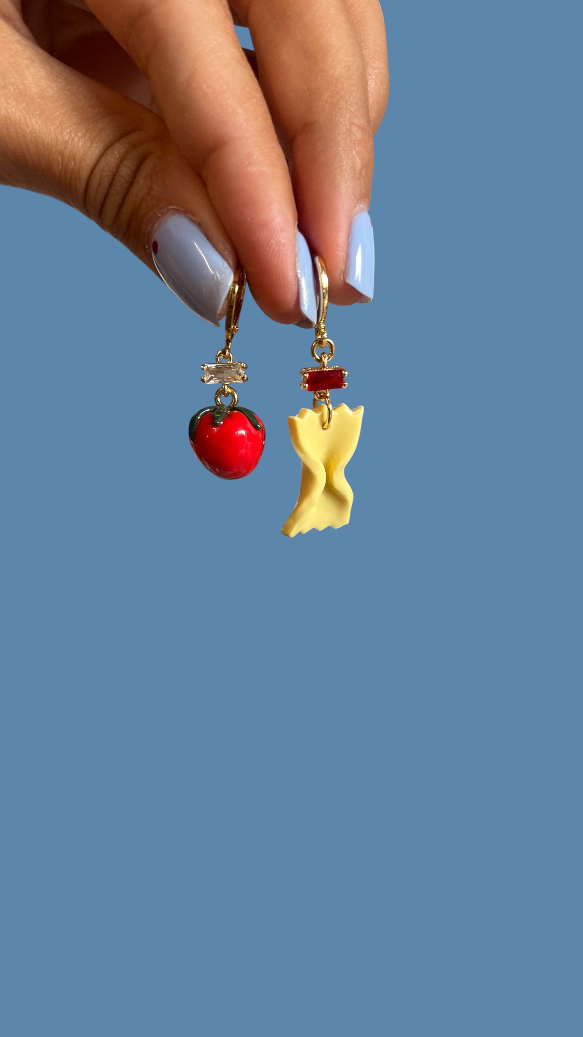 Orecchini leggeri e raffinati, realizzati con basi in acciaio placcato oro, anallergini e inossidabili, e arricchiti dai charms. Le perle sono naturali e di fiume. Piccoli dettagli che catturano l’attenzione, capaci di trasformare il cibo in simbolo di eleganza giocosa.